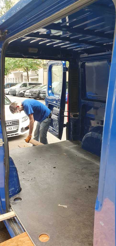 Dank des Vorschlaghammers des netten polnischen Handwerkers ist es uns mit viel brachialer Gewalt gelungen, die Bodenplatte zu lösen.