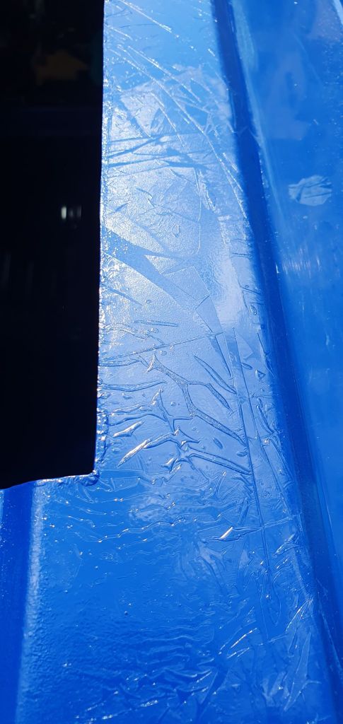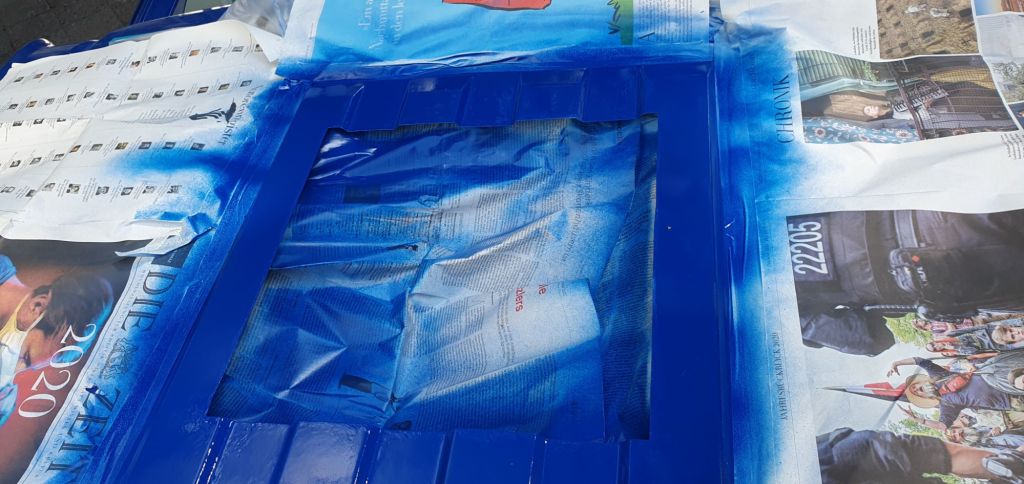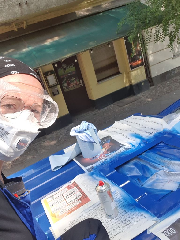 Das Fenster ist auch noch nicht drin, da es gestern wieder regnete und wir eine Folie drüber kleben mussten. Offensichtlich war der Lack doch noch nicht trocken und ging eine innige Verbindung mit der Folie ein. Also nochmal alles frisch machen.