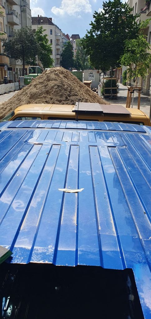 Nächsten Samstag sollte die Rückbank eingebaut werden, das geht aber nur, wenn der Boden zuvor fertig ist. So war der Plan. Da sich aber in sekundenschnelle der Sand überall verteilt, können wir nicht Grundieren und Lackieren und auch nicht die Latten und das Armaflex einkleben.