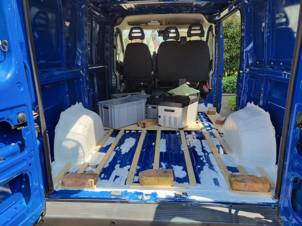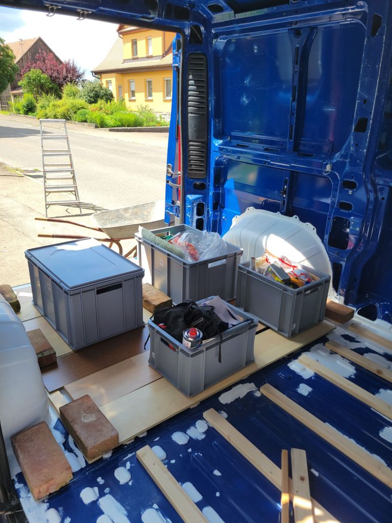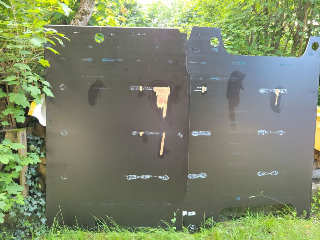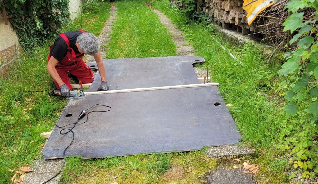 Gestern erstmal alles schön abgeschliffen.Die erste Hälfte mit Sika 554 verklebt.Die zweite Hälfte heute.Außerdem ein paar Sicherungsgadgets angebracht.Die kaputten Stellen an der Platte lackiert.Papa zerlegt die Platte – zu sperrig und schlecht einzusetzen.