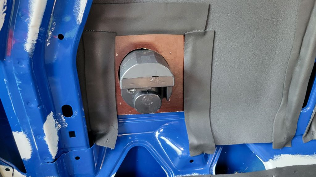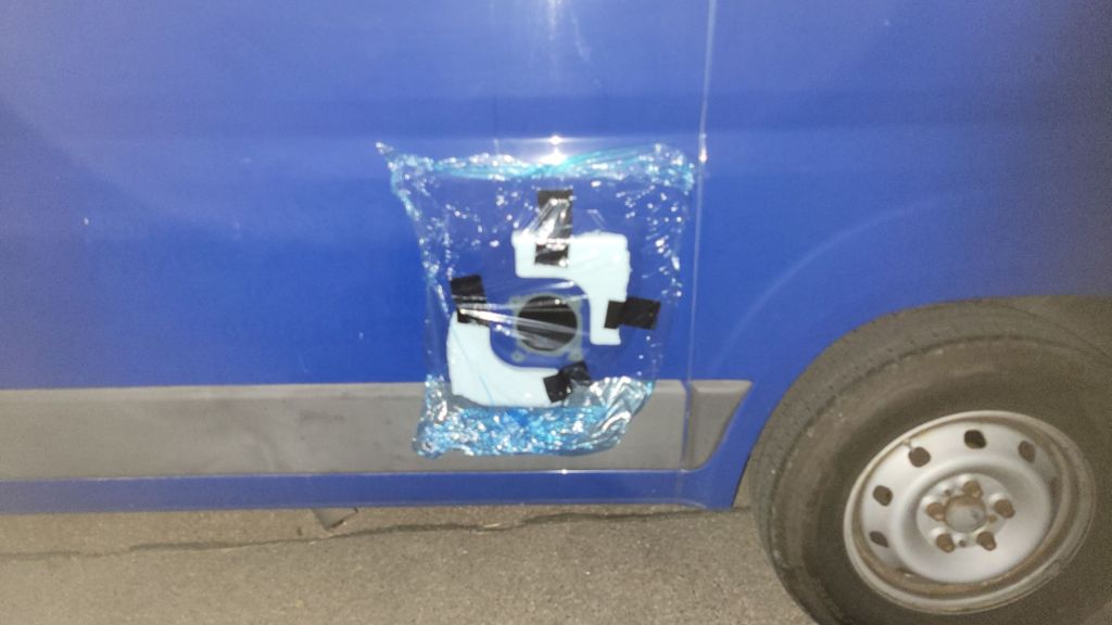 Und das nächste Loch im Blech. Dank des Nachbarns Gile auch schön rund. Jetzt muss noch das Zinkspray über Nacht trocknen…