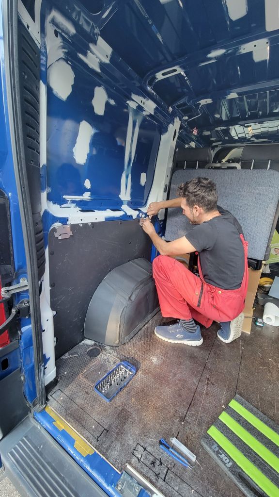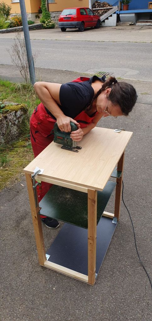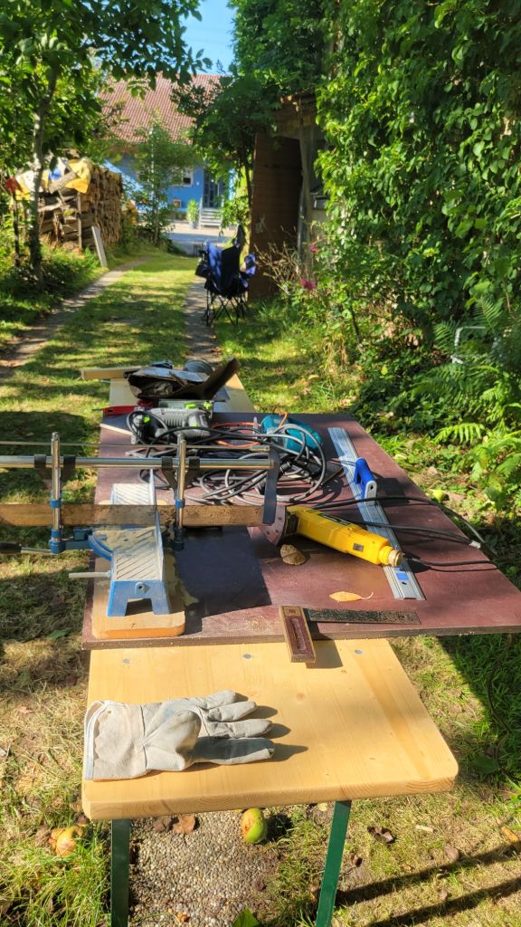 Montag: es bleibt herbstlich. Die größte Herausforderung sind die geraden Kanten- einr Stichsäge haben wir schon geschrottet und auch die Tauchsäge kapituliert mitunter und stellt sich quer bzw. schräg. Aber hey, wir wollten ja auch einen DIY Bus 😉